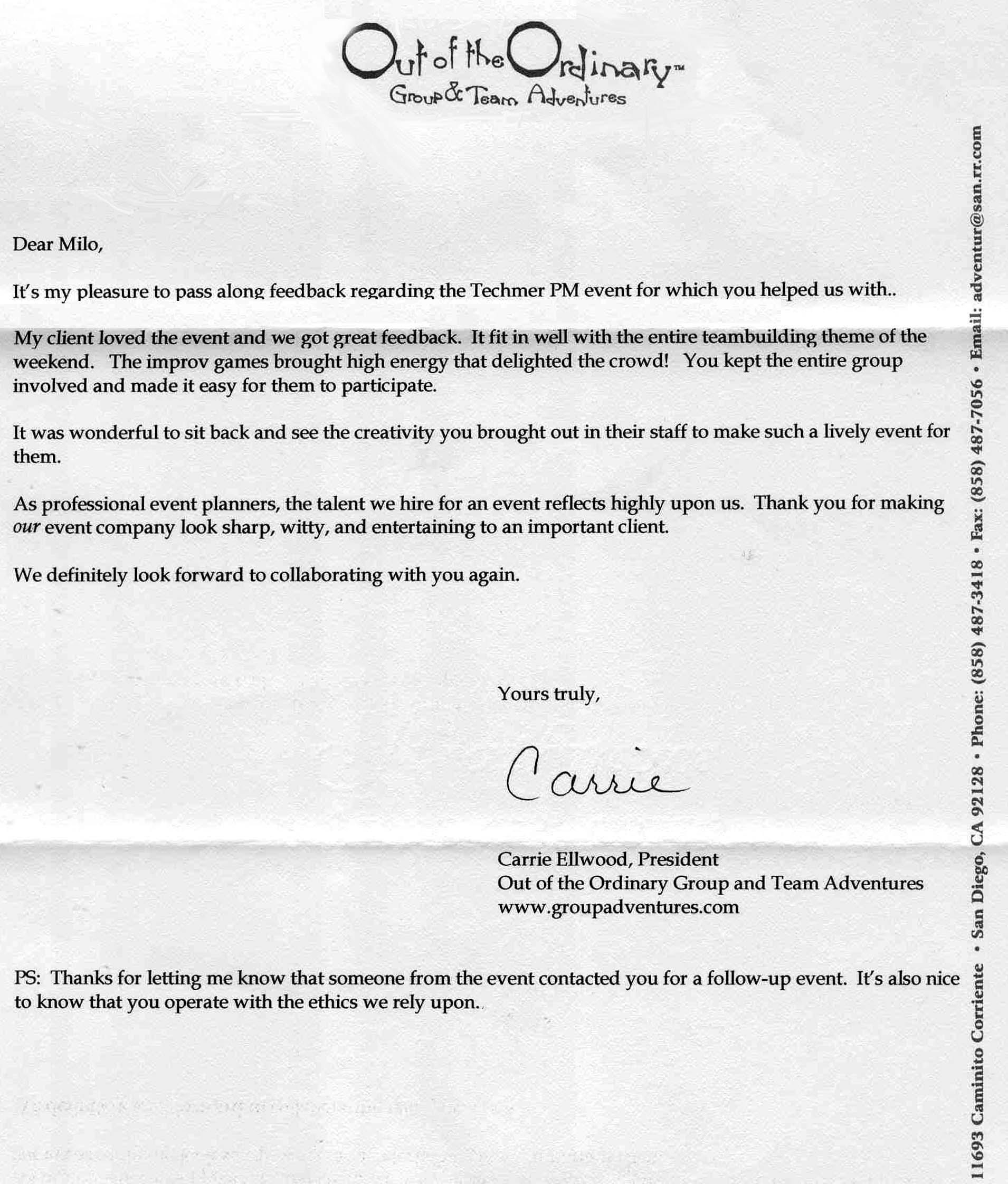 Letter of Reference from a Professional Event Planner --