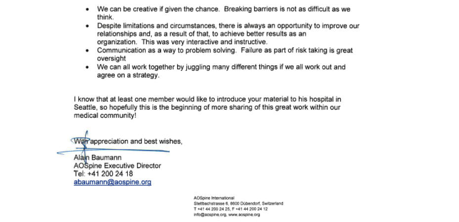 Letter of reference from AOSpine executive director