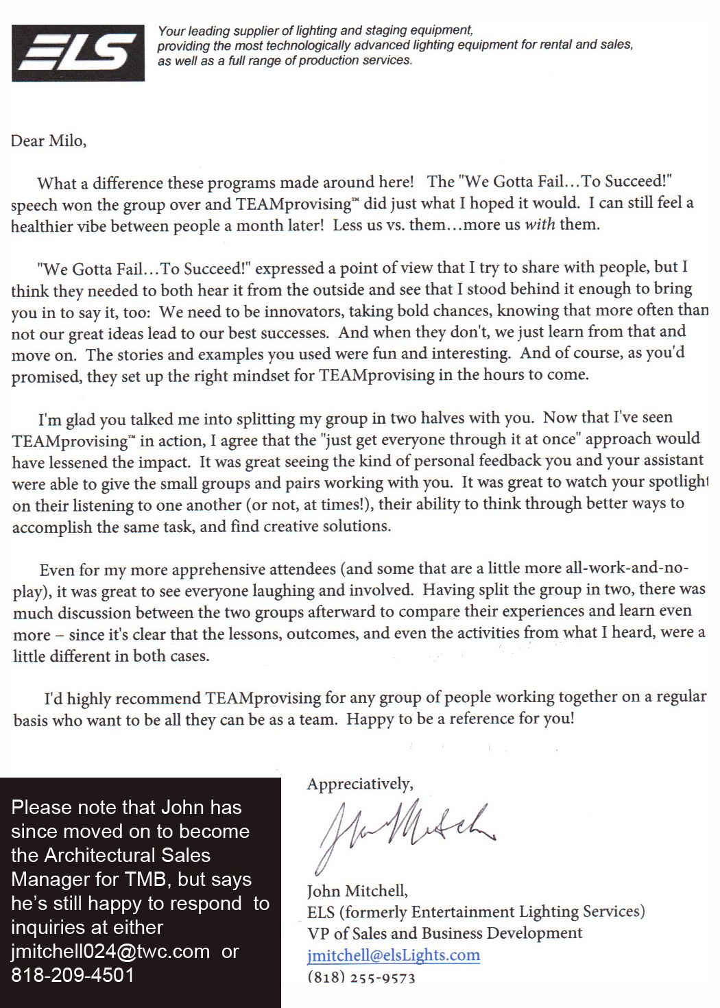 Starting with the speech "We Gotta Fail...To Succeed!" and moving from there into TEAMprovising.