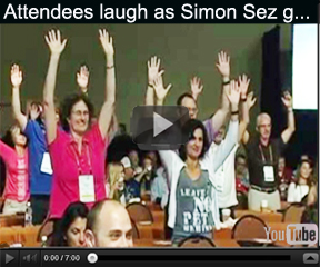 Professional Simon Sez (Says) boosts the energy and listening for the rest of your conference