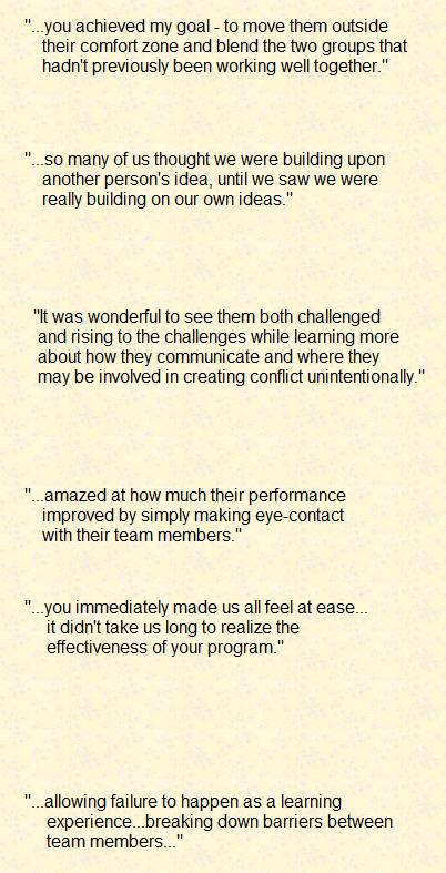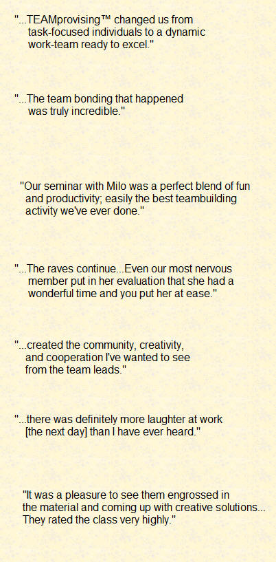 Dynamic motivational speaker and team building in San Diego: www.IMPROVentures.com.